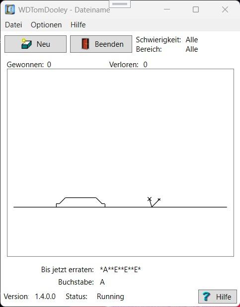 WDTomDooley ist ein klassisches Wort- und Denkspiel, angelehnt an das bekannte Galgenmännchen-Prinzip.